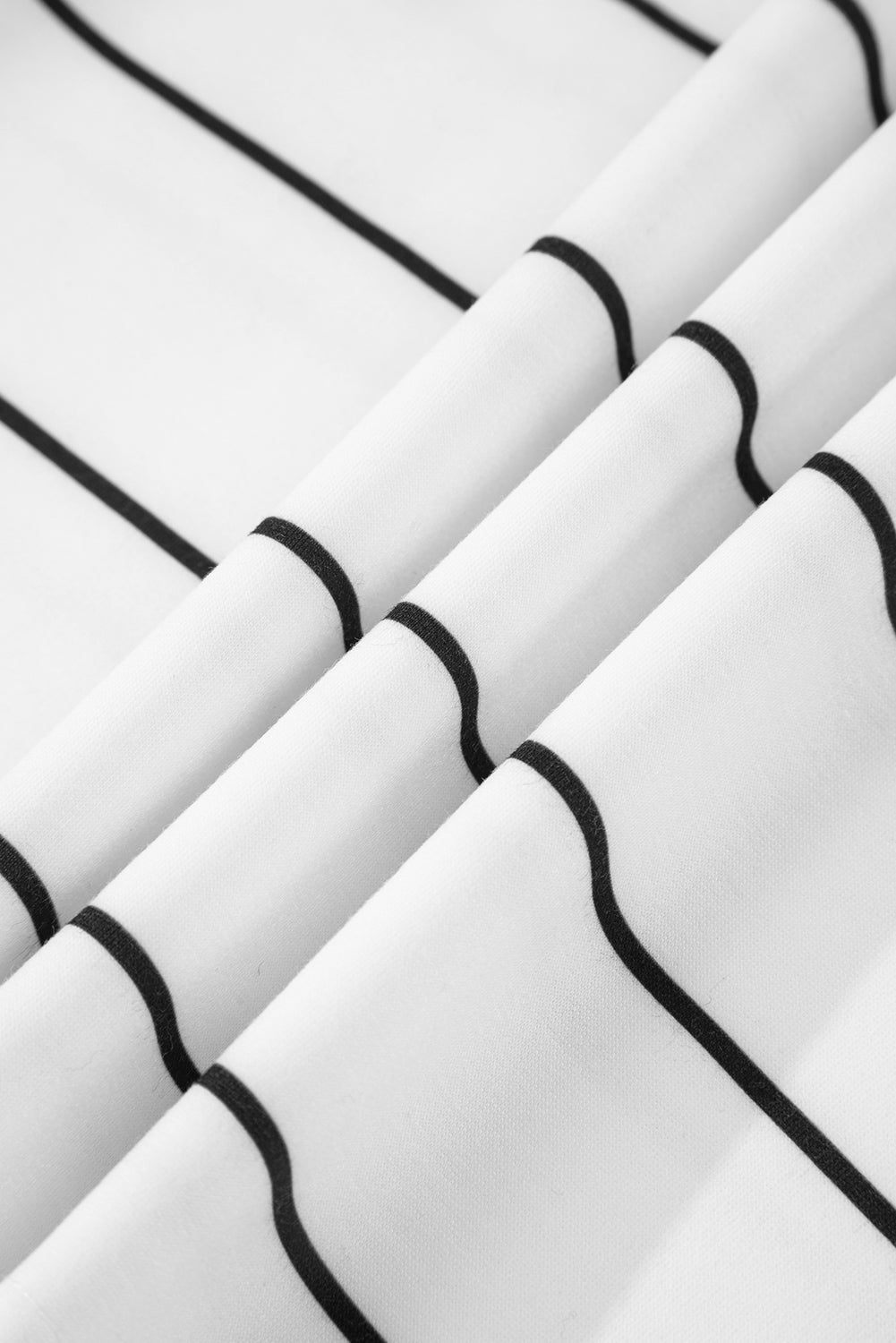 Elevate your casual wardrobe with this elegant two-piece set featuring a crisp white pullover with subtle stripe details and matching shorts. Designed for refined comfort, this ensemble blends effortless style with versatile wearability—perfect for relaxed outings or chic weekend moments. The clean lines and minimalist design ensure a polished appearance without compromising ease.